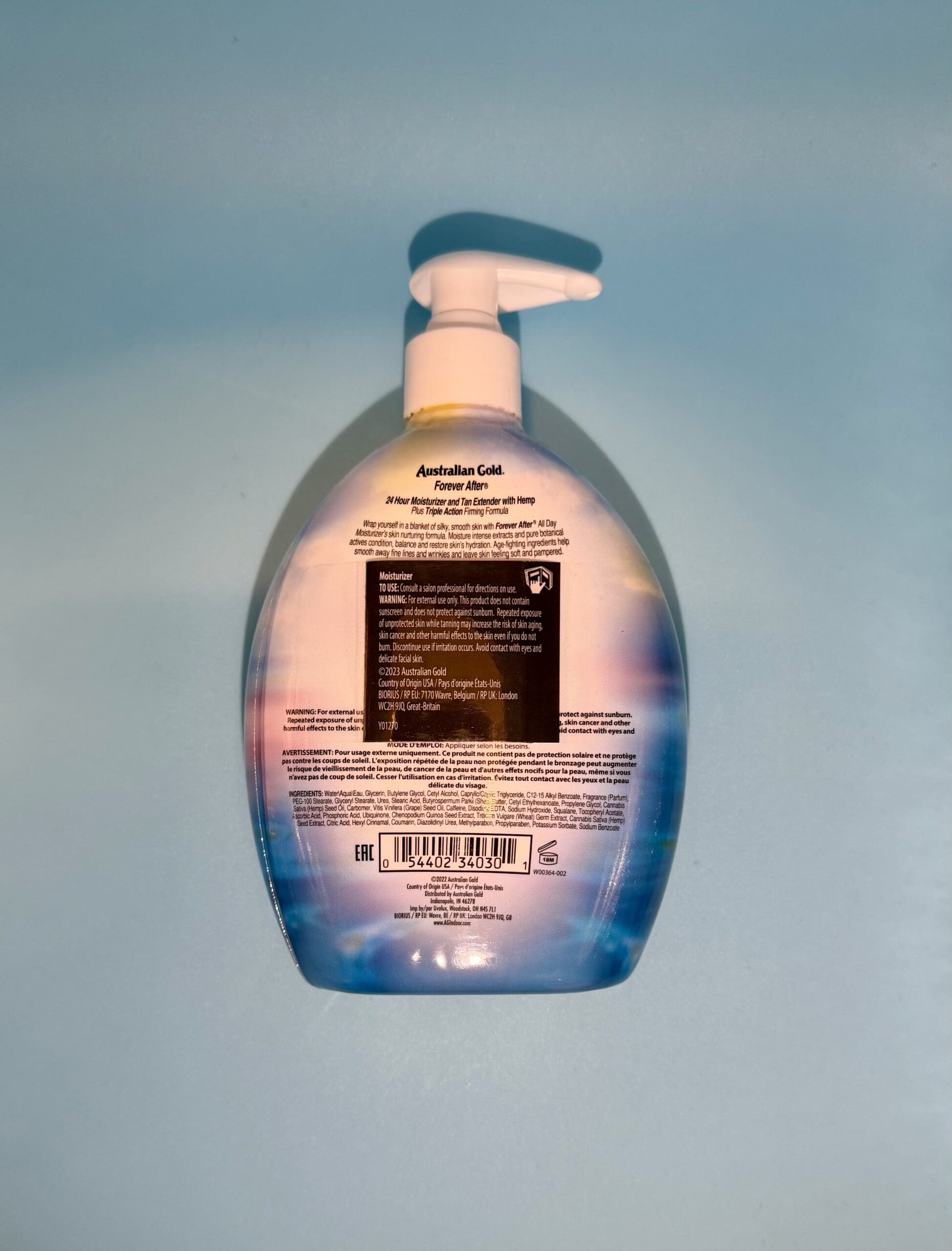 Australian Gold Forever After is de meest verkochte Australian Gold huidverzorging ter wereld! Blijft 24 uur lang actief, zorgt voor een zijdezachte, jonge en stevige huid. Te gebruiken als dagcrème, na het zonnen en na het douchen. Deze verzorgende lotion bevat CoQ10, Firming Complex, LipoCare® anti-verouderingsformule, essentiële vochtinbrengers, lichaamscontour formule, bruinverlenger, Hennepzaadextract, etc.